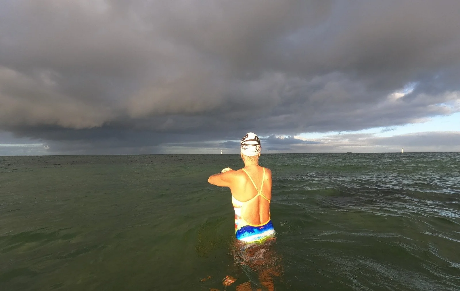 “I love the feeling of the ocean water against my body,” says Lindy Cook, who regularly swims in Melbourne’s bay. Sometimes it’s silky soft and on other days, when the current is strong, it’s as though it’s more dense and harder to cut through.”